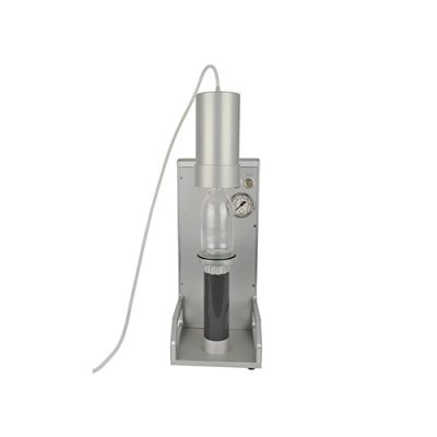 Comprises a compressor and a sample pressurisation chamber. A sample bottle is placed on the sample platform and the platform is raised into the pressurisation chamber where it is pressurised to 3 bar by an integral compressor. The sample passes to the particle counter under pressure via the sample delivery tube. The delivery tube contains a non return valve to prevent sample leakage when the sample delivery system is disconnected from the particle counter.
